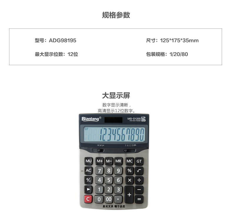 商品名称:晨光(M&G) ADG98195 桌面型计算器MG-D120S