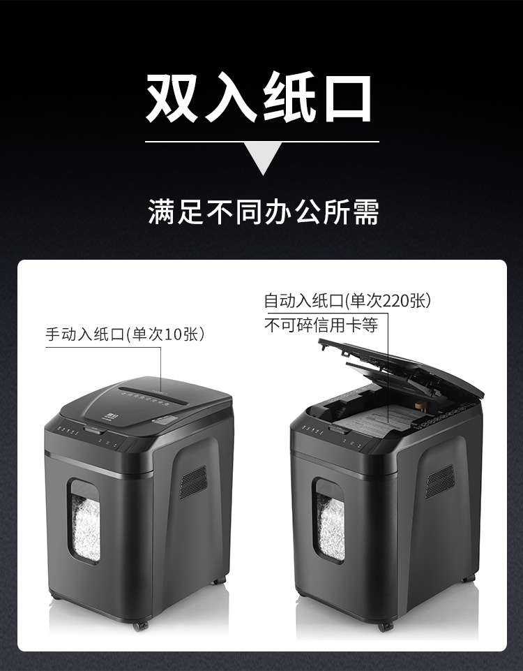 商品名称:震旦 AS220CM 全自动时尚商务办公碎纸机(手动10张/4级保密/自动220张)自动大型 黑色