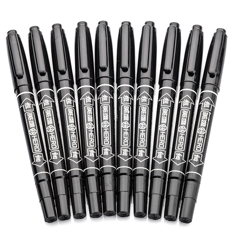 英雄(HERO) 887 双头油性记号笔 黑色 10支/盒