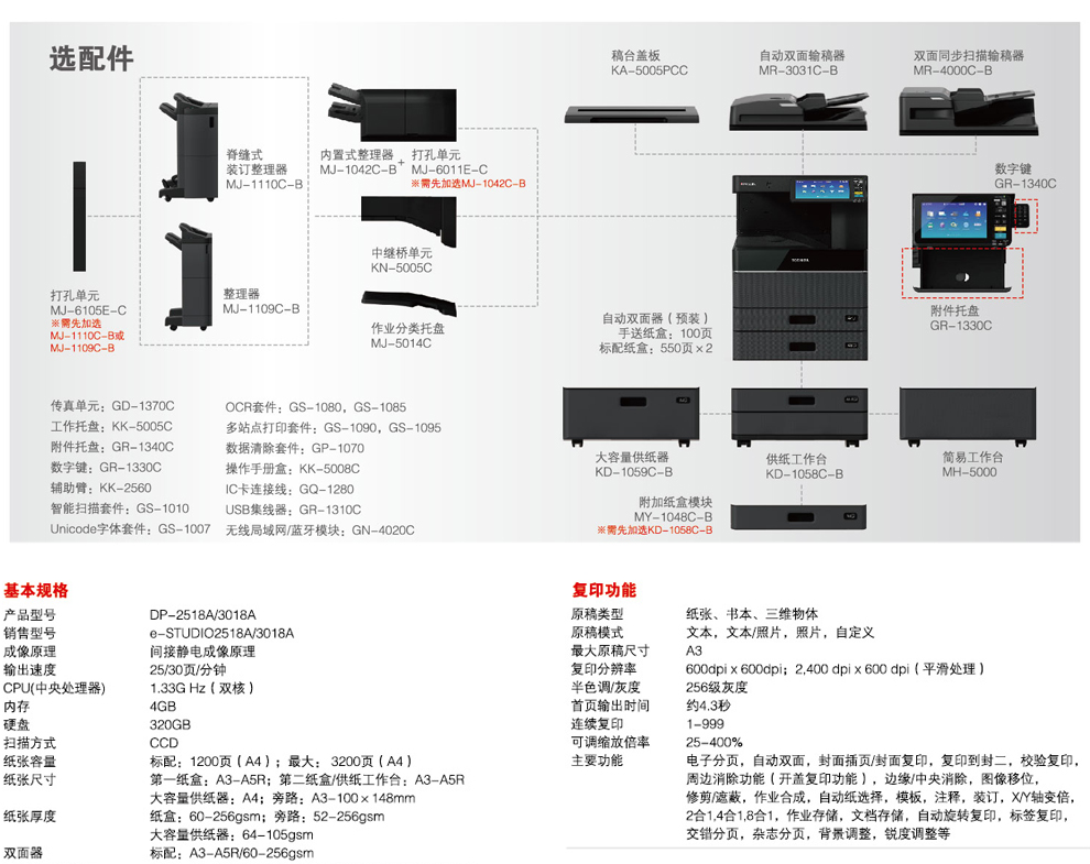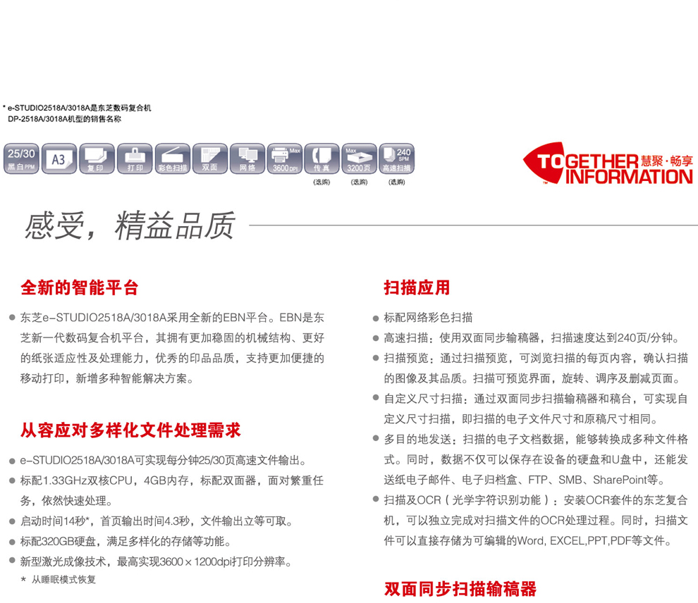 商品名称:东芝(TOSHIBA)4518A A3黑白数码复合机 主机+四纸盒+双面器+双面输稿器+供纸工作台
