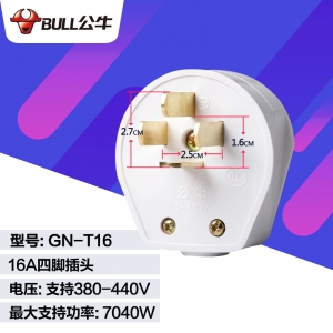 公牛 GN-T16 三相四线插头16A440V 大功率四脚插头