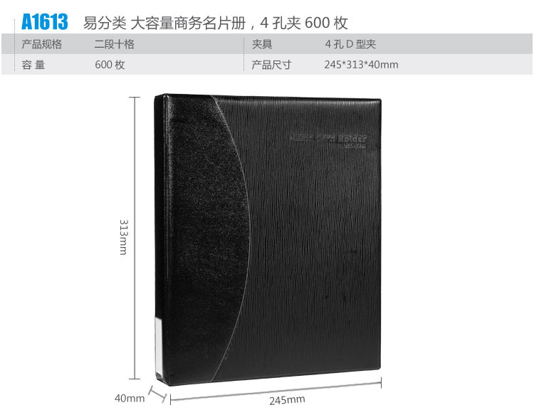 商品名称:齐心(COMIX) A1613 大容量商务名片册 600枚 A4