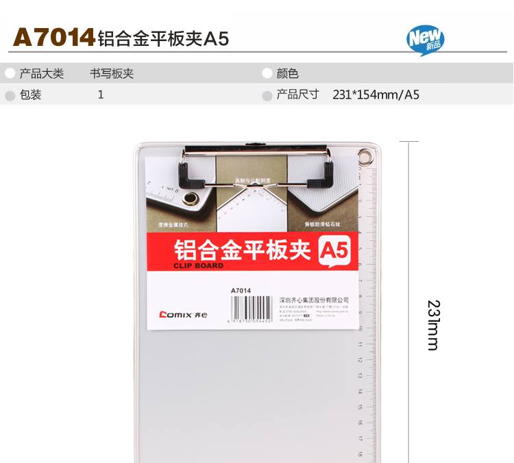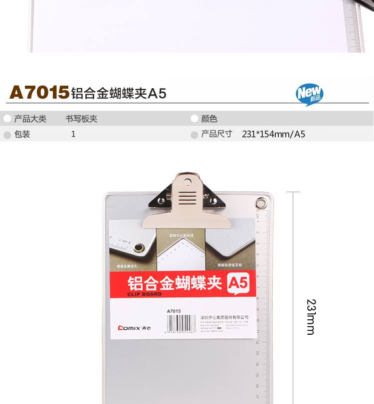 商品名称:新品齐心铝合金板夹A7014平板夹A7015A5蝴蝶夹