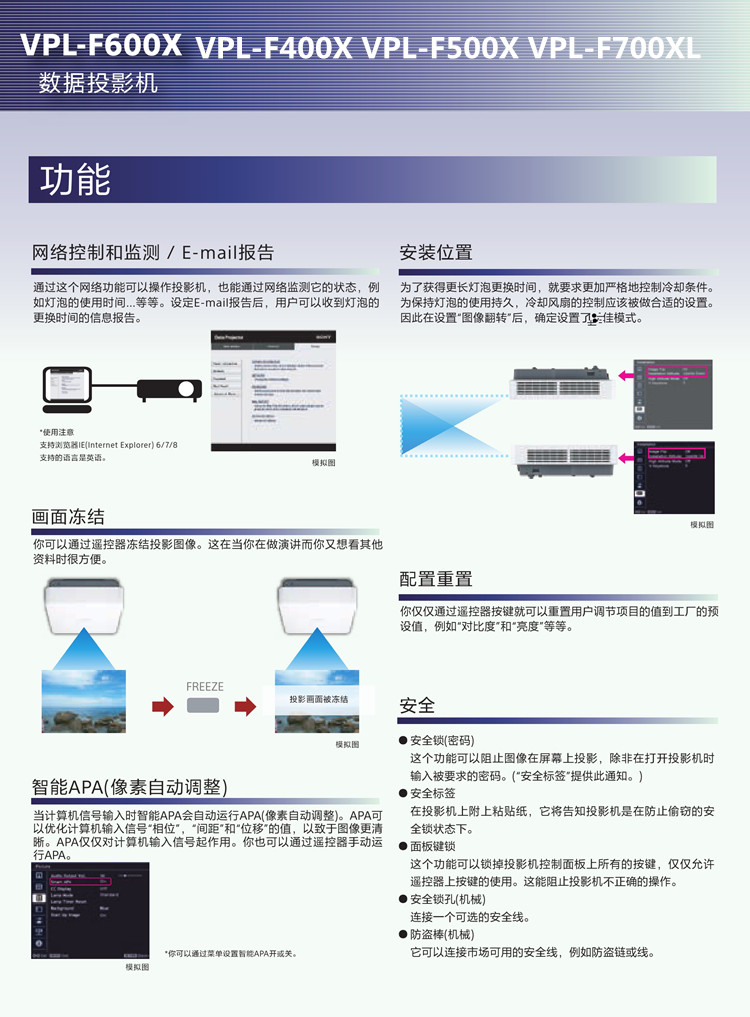 商品名称:索尼(SONY) VPL-F600X 投影机 单主机 6000流明 官方标配