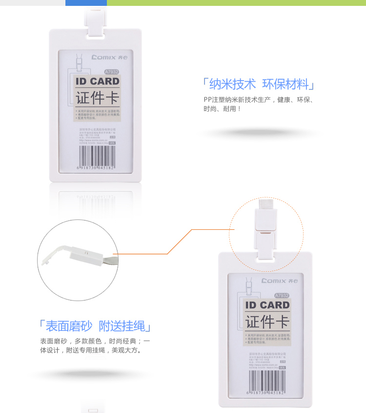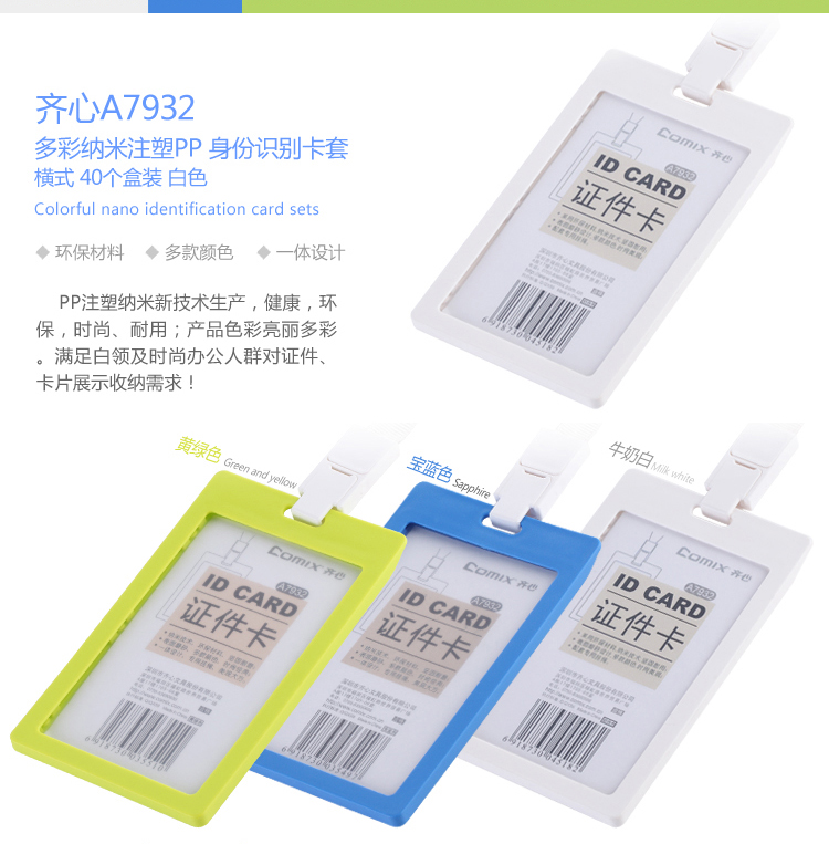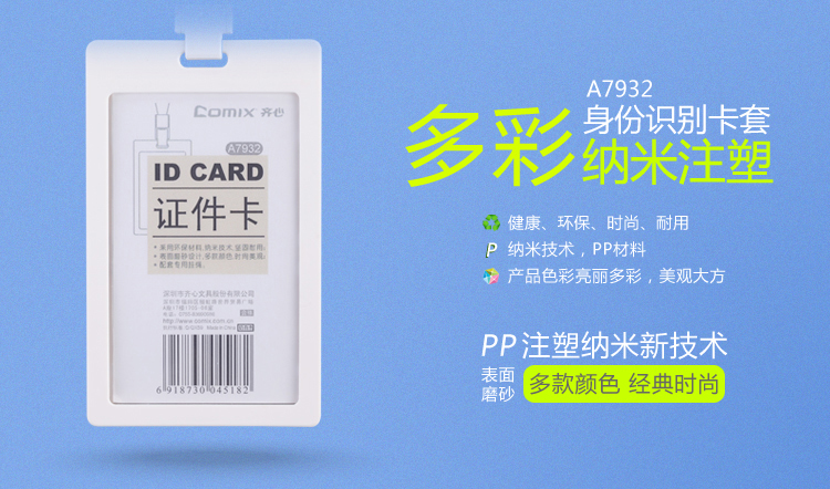 商品名称:齐心 A7932 多彩纳米注塑PP身份识别卡套