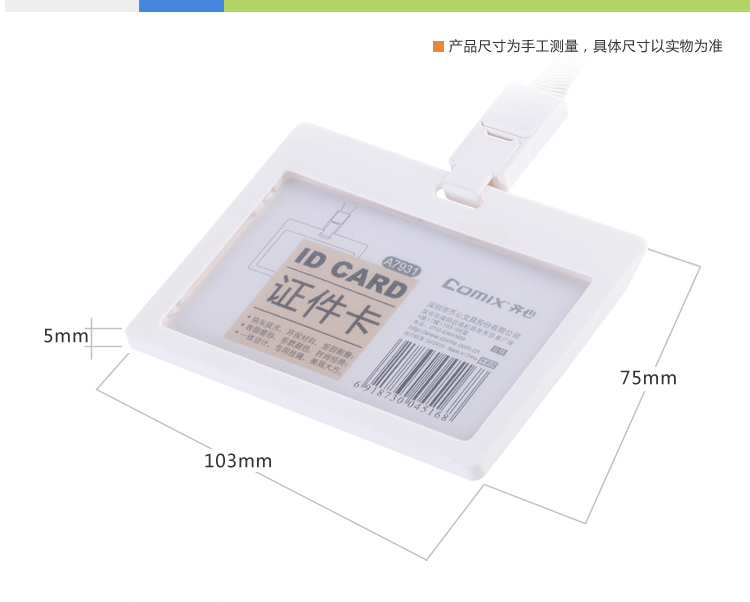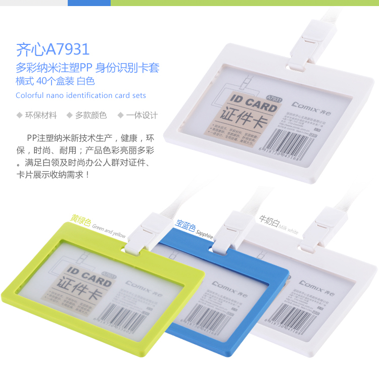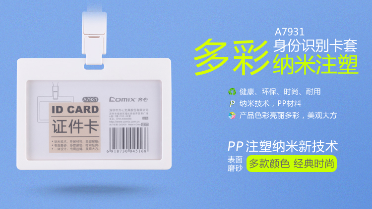 商品名称:齐心 A7931 多彩纳米注塑PP身份识别卡套