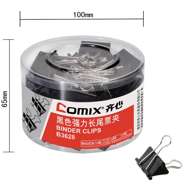 齐心 B3628 黑色长尾票强力据夹25mm48支筒装