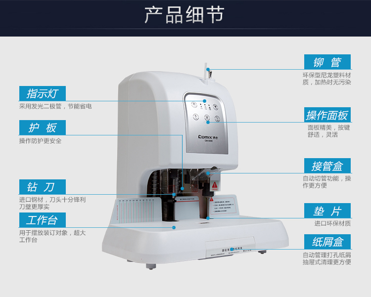 商品名称:齐心CM-5008全自动凭证激光铆管打孔装订机智能电动财务装订