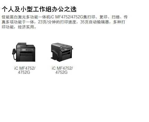 佳能(Canon)iC MF4752 黑白激光多功能一体机 (打印 复印 扫描 传真)