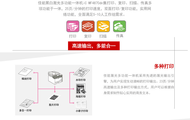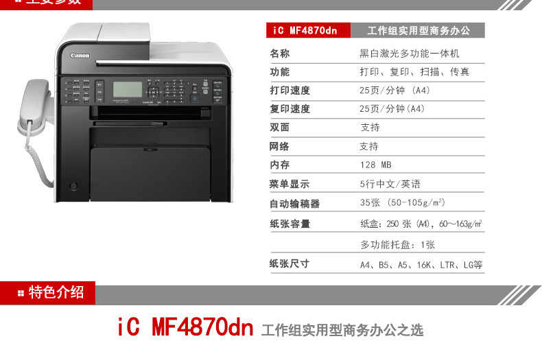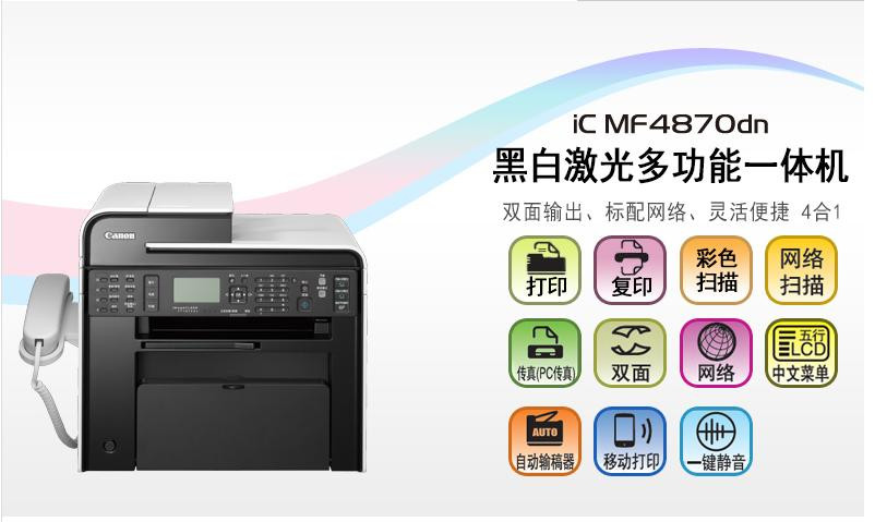 商品名称:佳能 (Canon) iC MF4870dnG 黑白 激光一体机