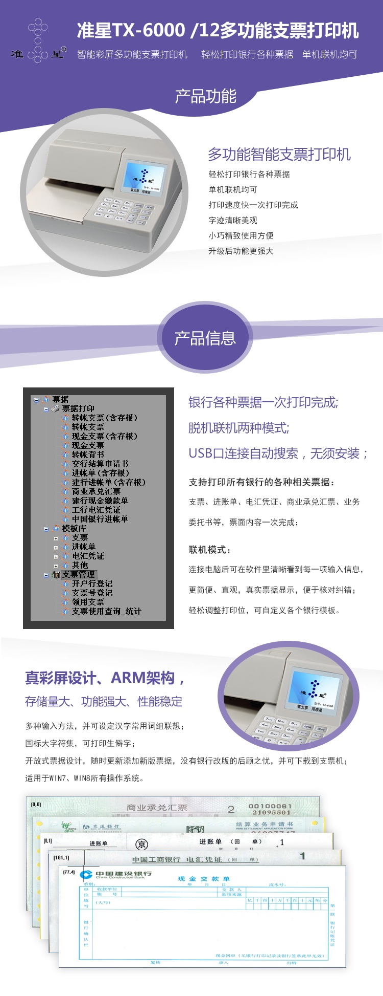 商品名称:准星(zhunxing) TX-6000 /12多功能支票打印机