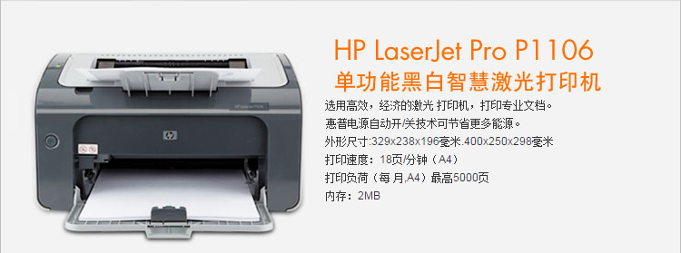 商品名称:惠普(HP) LaserJet Pro P1106激光打印机 A4幅面