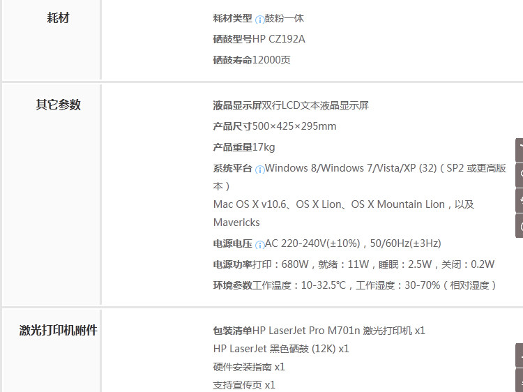 商品名称:惠普HP LaserJet Pro M701a A3黑白激光打印机