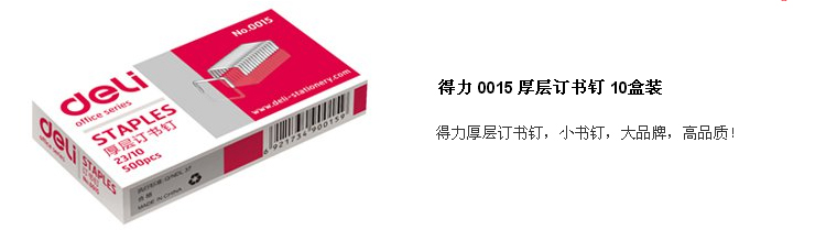 - 商品名称:得力0015加厚订书钉重型专用 可订50-80张10盒/包