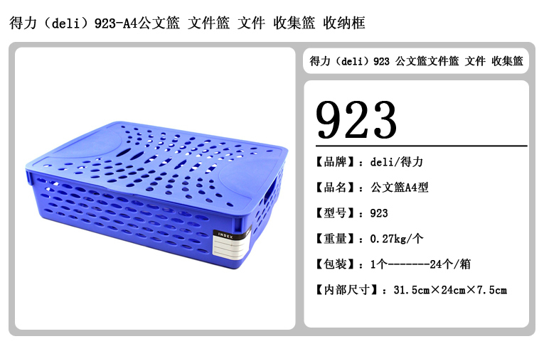 商品名称:得力923 带盖公文篮 A4(蓝色)
