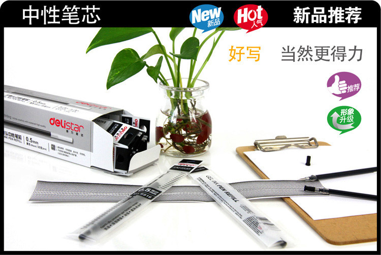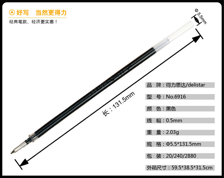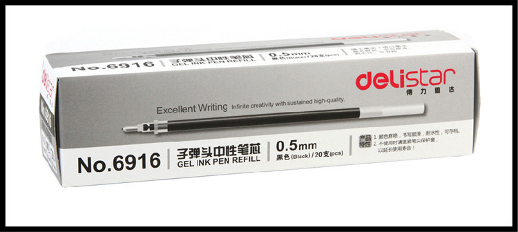 商品名称:得力(deli)6916 0.5mm黑色子弹头笔芯 中性笔水笔签字笔替芯 20支/盒