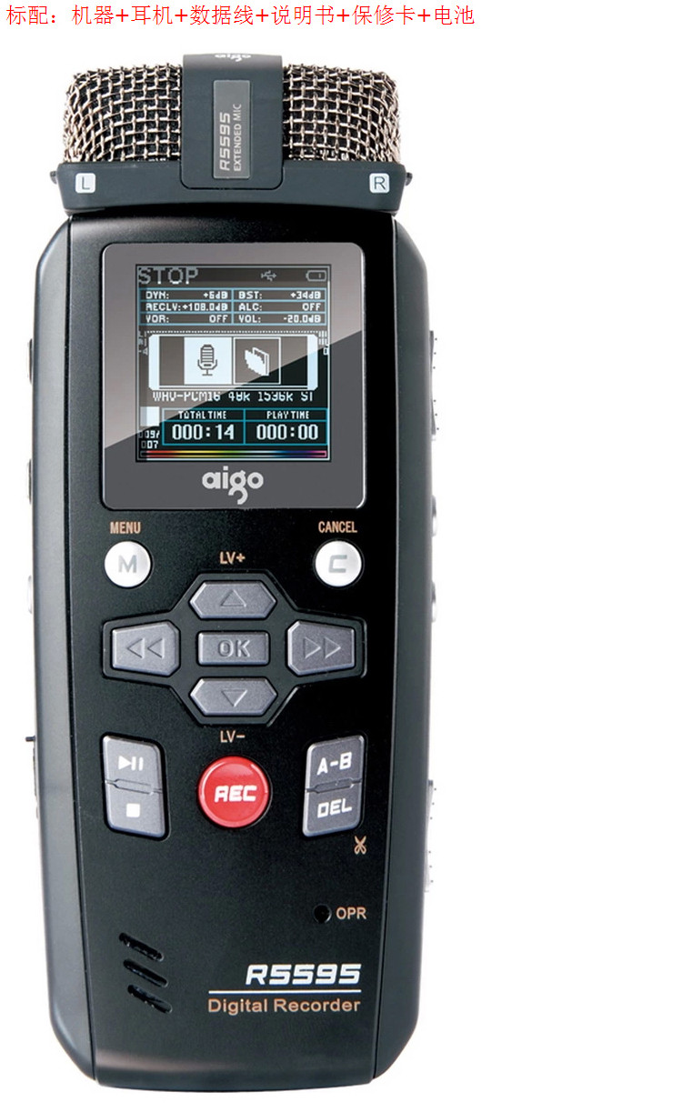 aigo爱国者 R5595 高清晰双核录音笔 8G 黑色