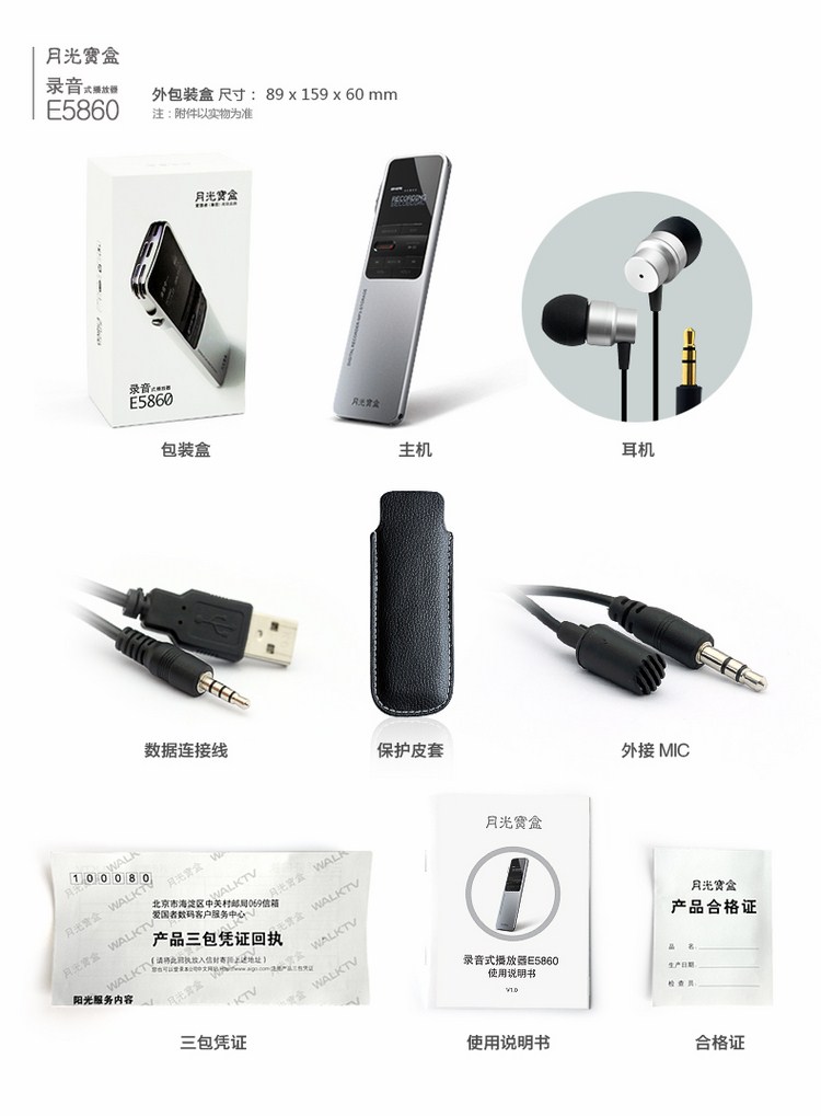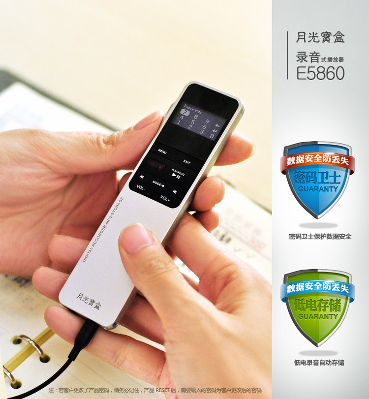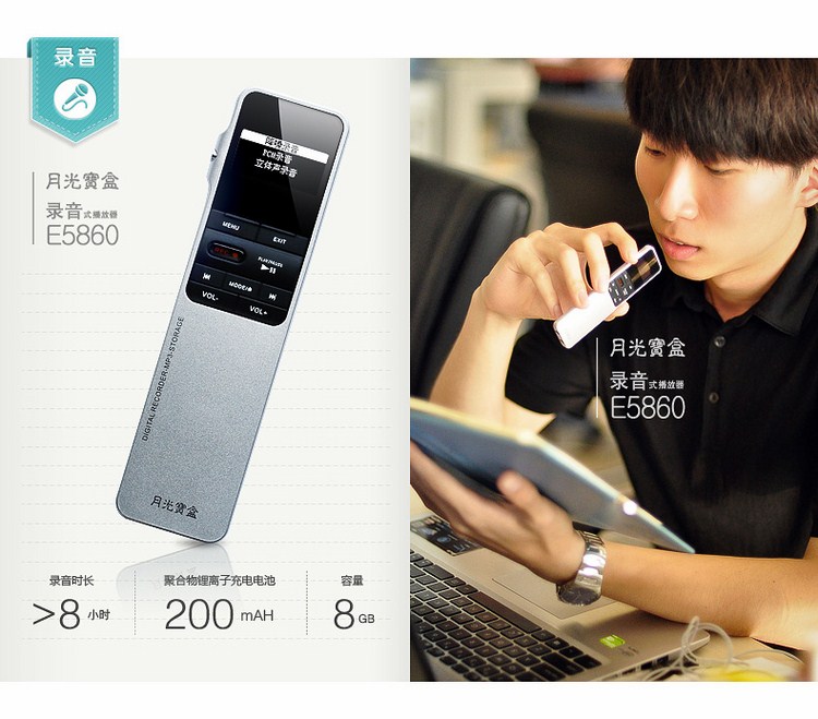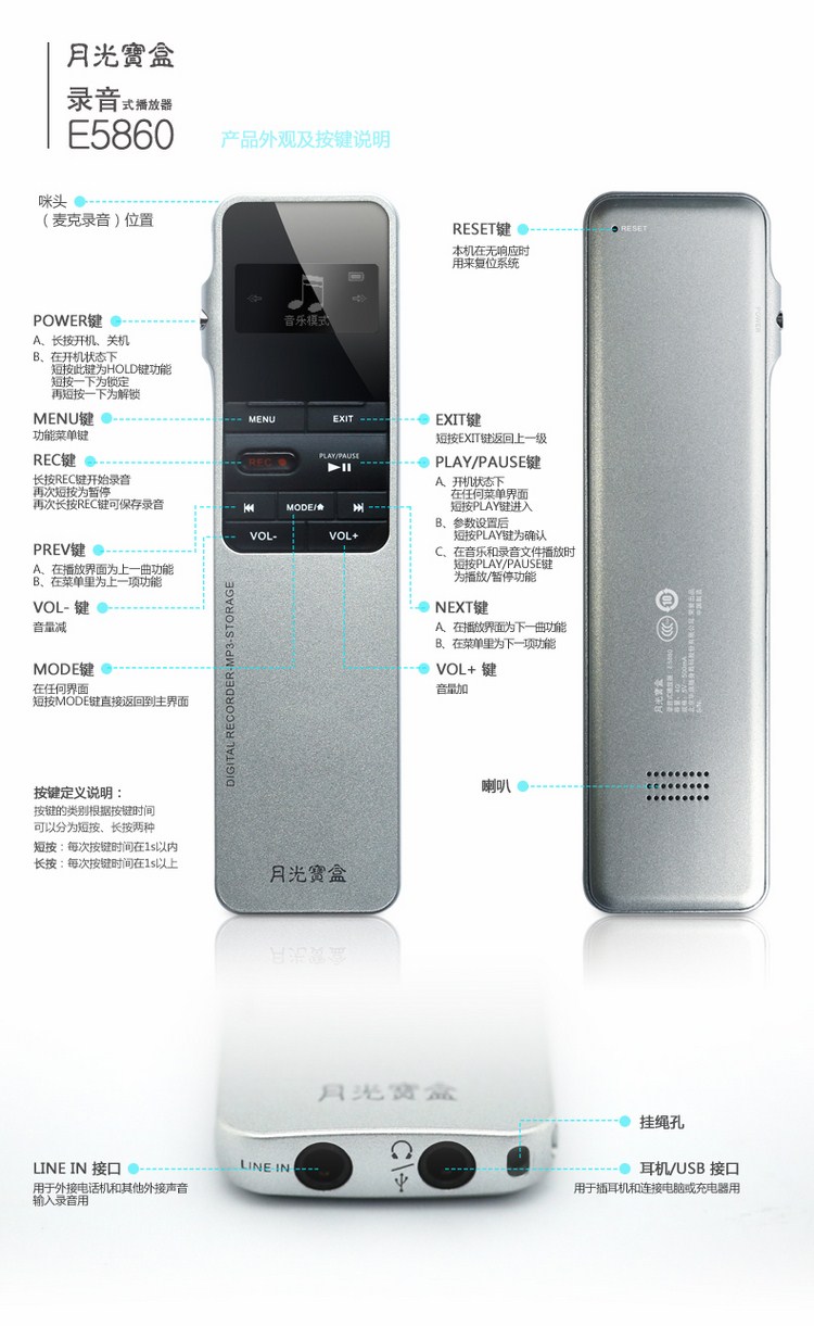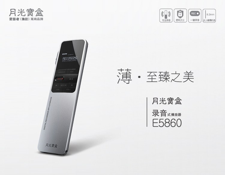 商品名称:爱国者(aigo)E5860 月光宝盒 金属录音笔 8G 银色