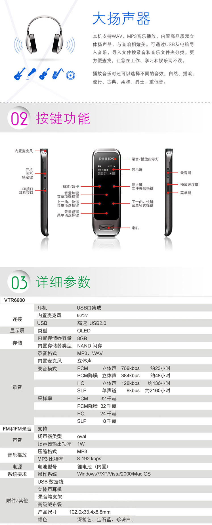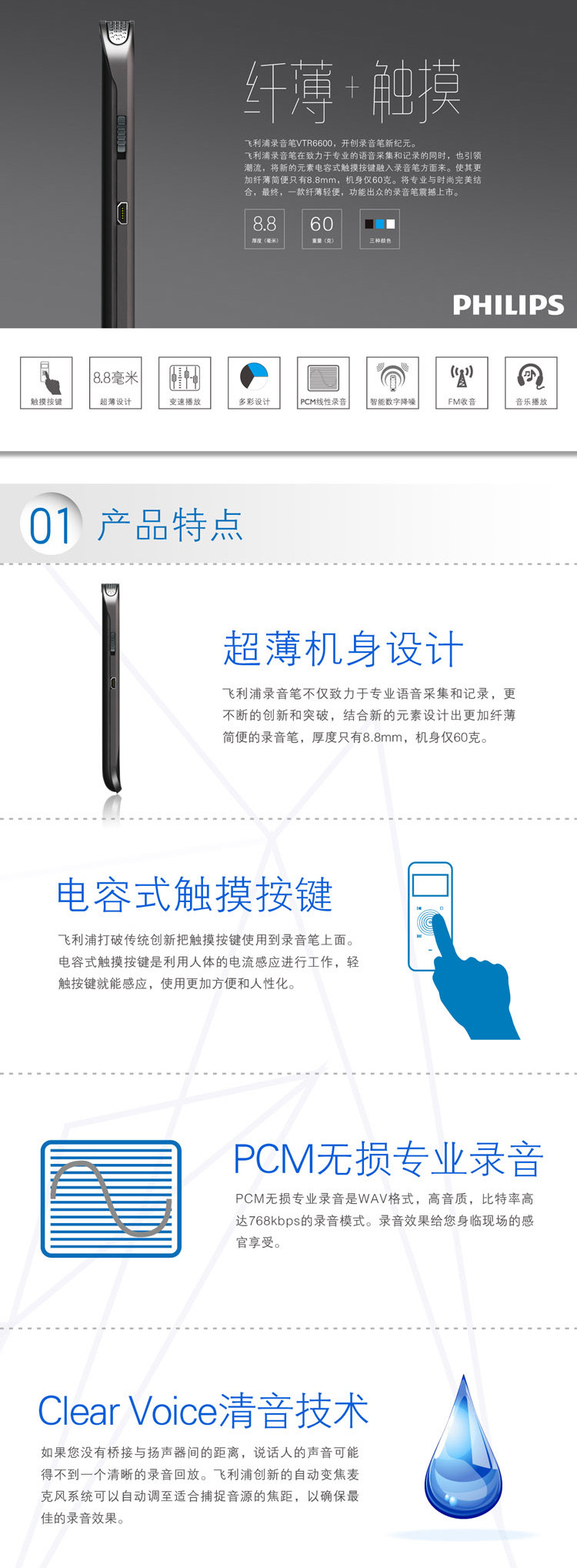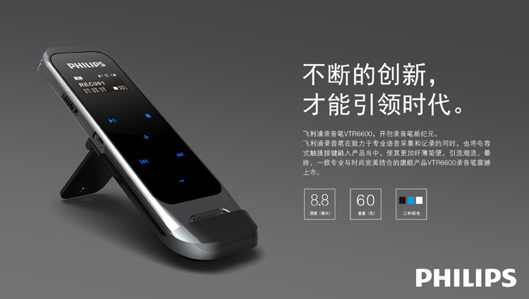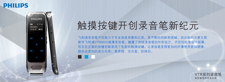 商品名称:飞利浦(PHILIPS) VTR6600 8GB 触摸微型数字降噪录音笔 蓝色