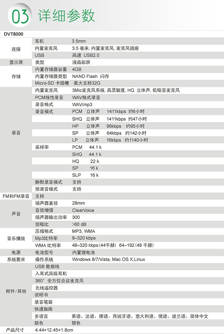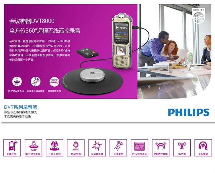 商品名称:飞利浦(PHILIPS) DVT8000 超清晰会议录音笔