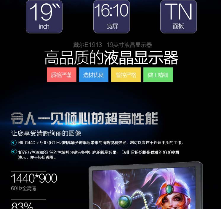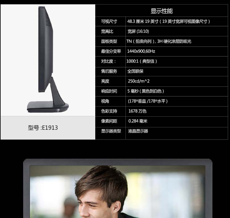 商品名称:戴尔(DELL)E1913 19英寸液晶显示器