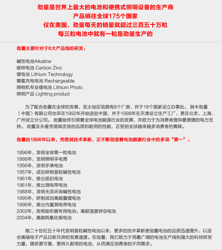 • 品牌:劲量/Energizer