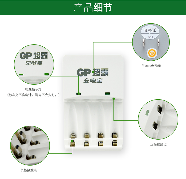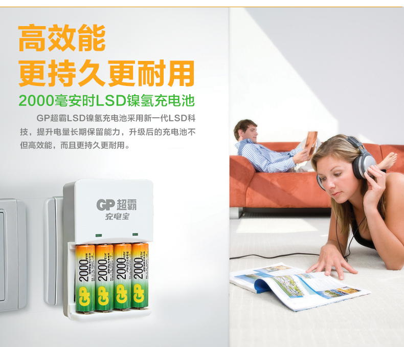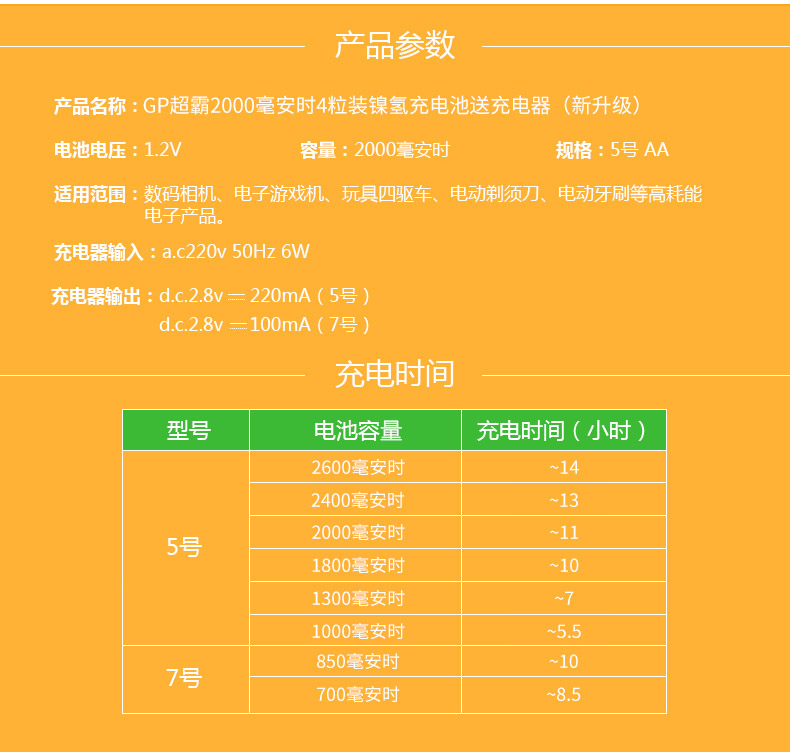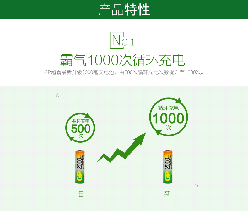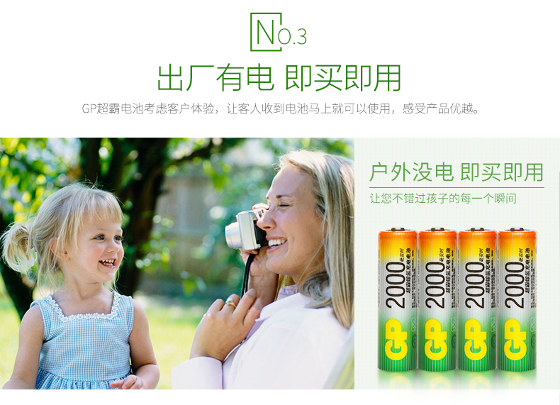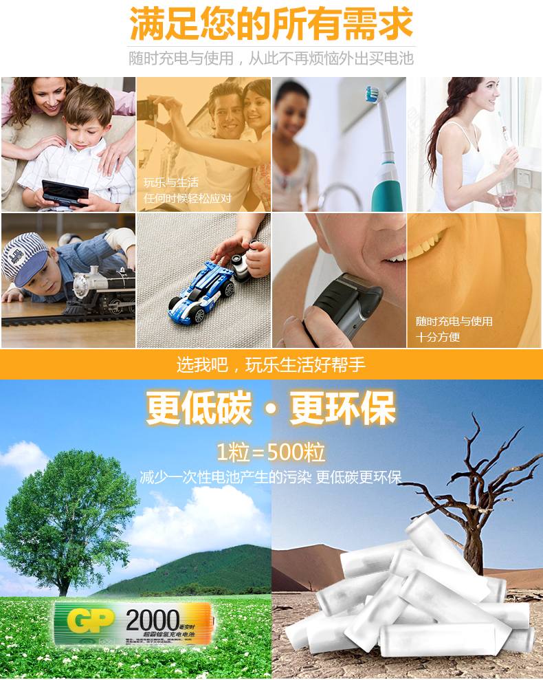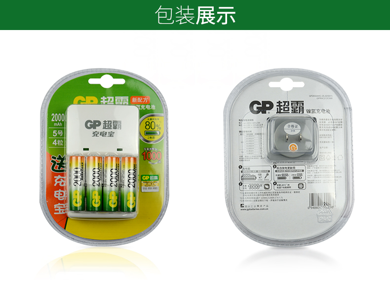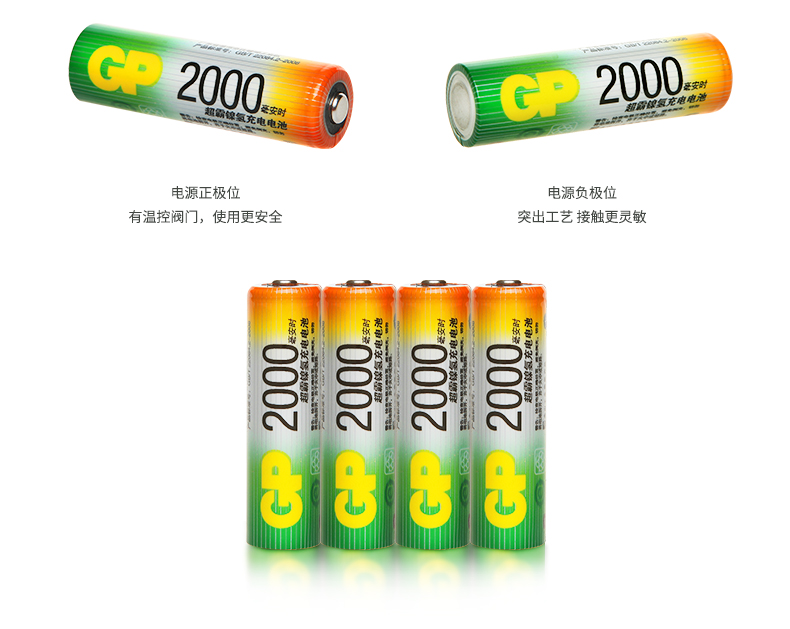 商品名称:GP超霸5号充电电池4节2000/2400毫安