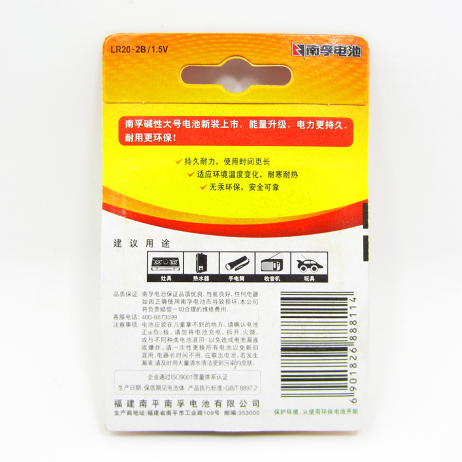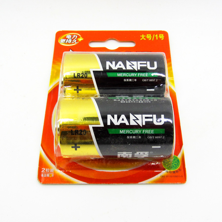 南孚 原装正品聚能环碱性电池LR20-2B 1号碱性2粒一卡装