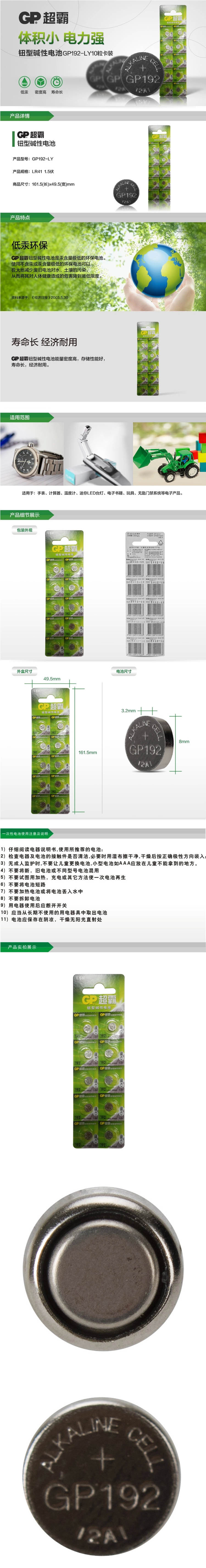 - 商品名称:GP超霸纽扣192 LR41 L736 AG3 392 RW37 V384碱性纽扣电池 GP192-LY