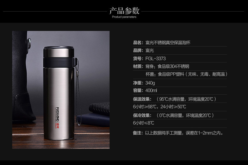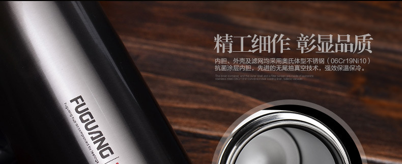 商品名称:富光双层真空不锈钢男士商务保温杯 过滤网茶杯防漏