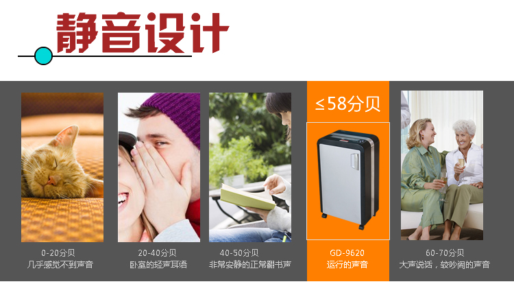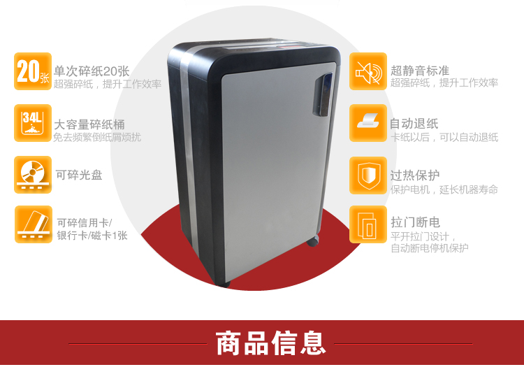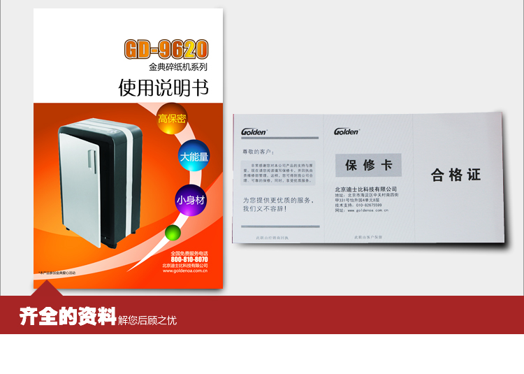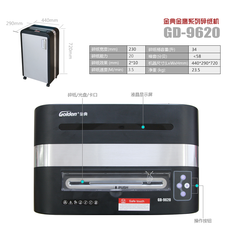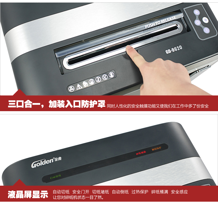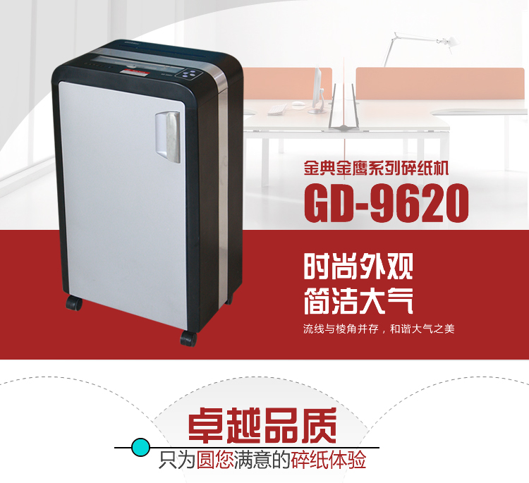 商品名称:金典GD-9620高保密电动个人家用办公碎纸机(单次20张/可碎光盘/4级保密/超静音)