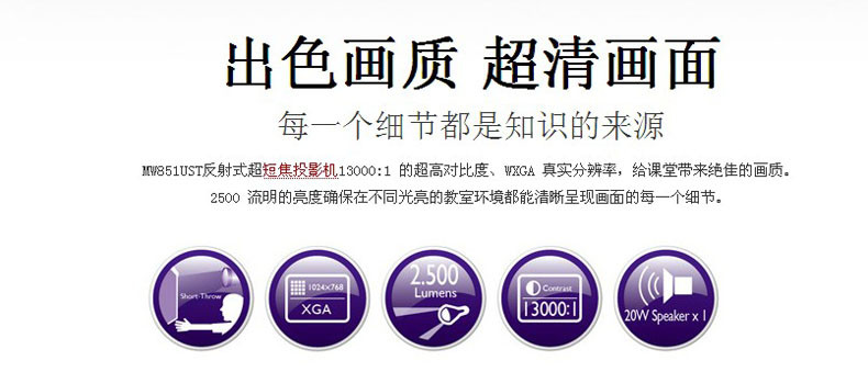 商品名称:明基BENQ MX850UST+ 超短焦投影机