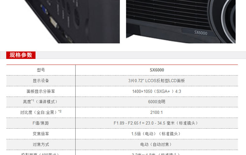 商品名称:Canon/佳能 LCOS工程系列 投影机 SX6000