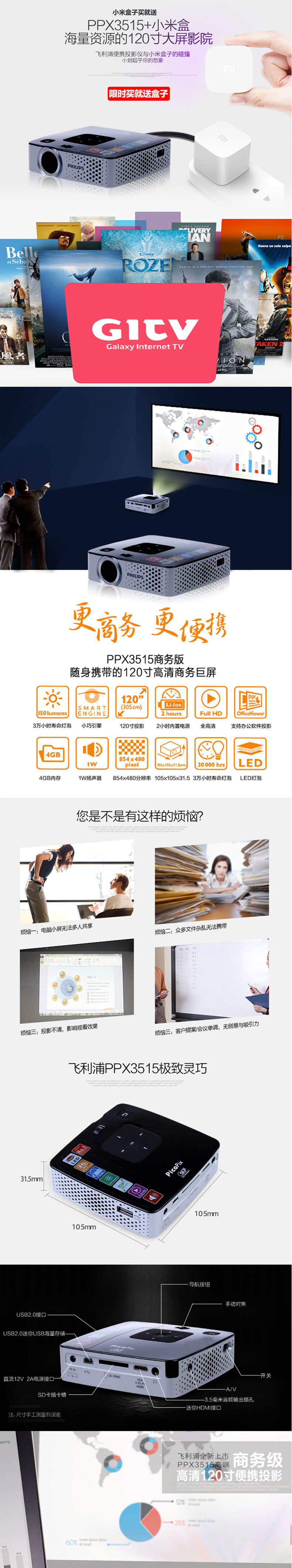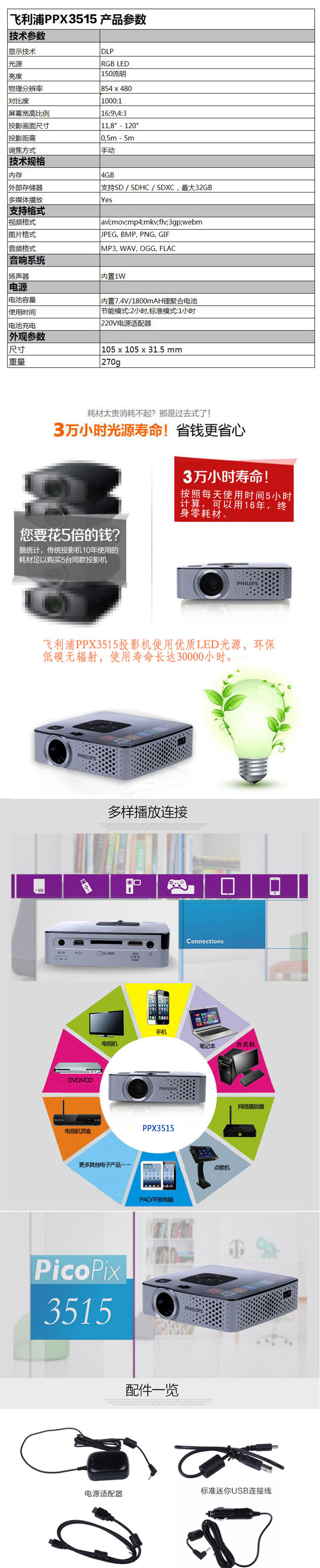 商品名称:飞利浦 PPX3515 商务高清便携微型投影仪
