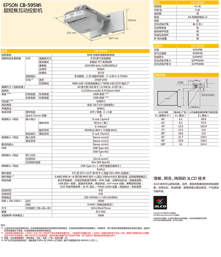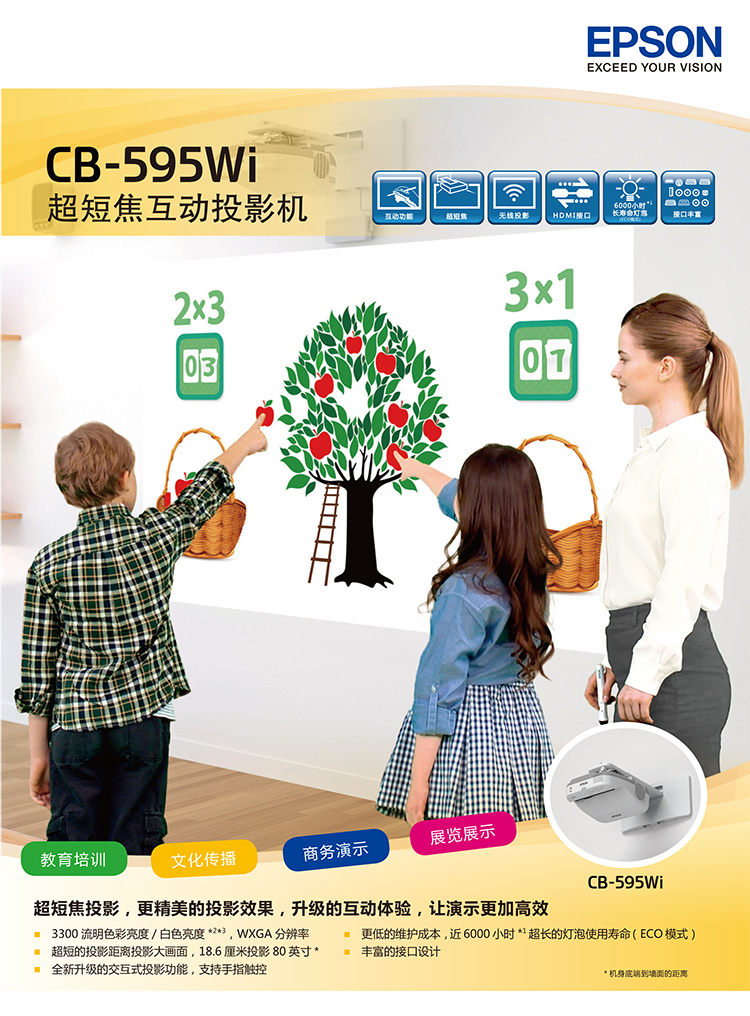- 商品名称:爱普生(EPSON)超短焦互动投影机投影仪: CB-595WI