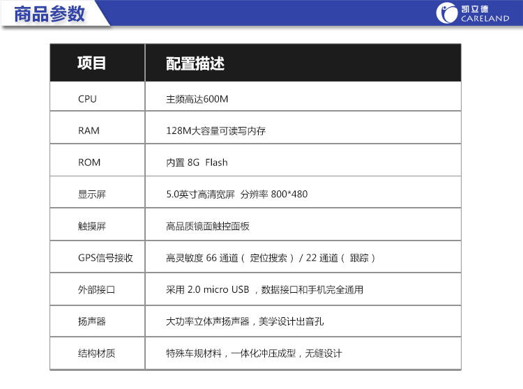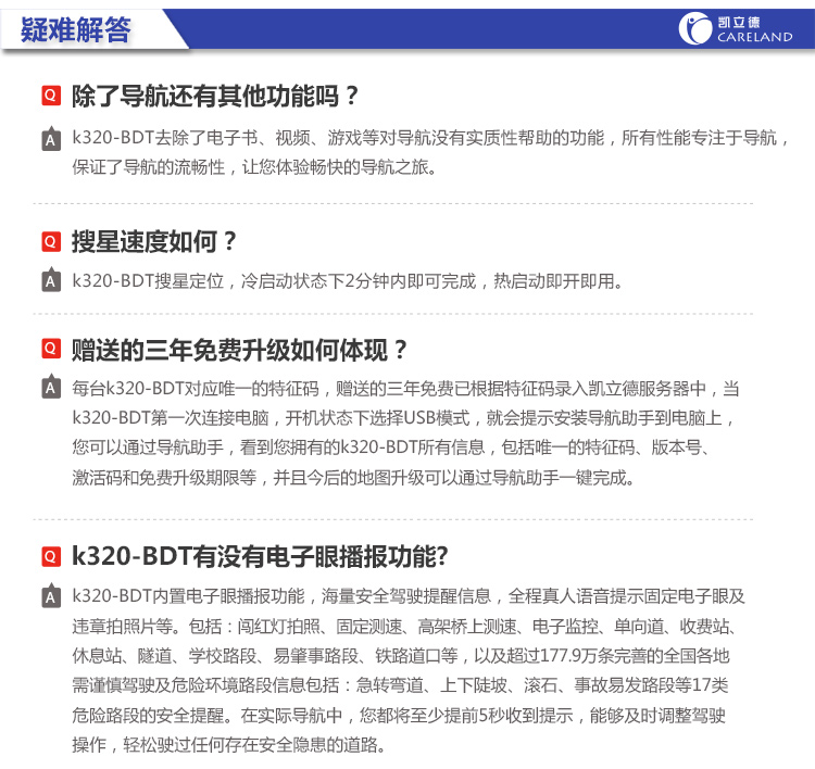 商品名称:凯立德 CARELAND K320-BDT 5英寸北斗导航仪