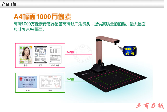 商品名称:中晶(microtek)H-Screen 701高拍仪