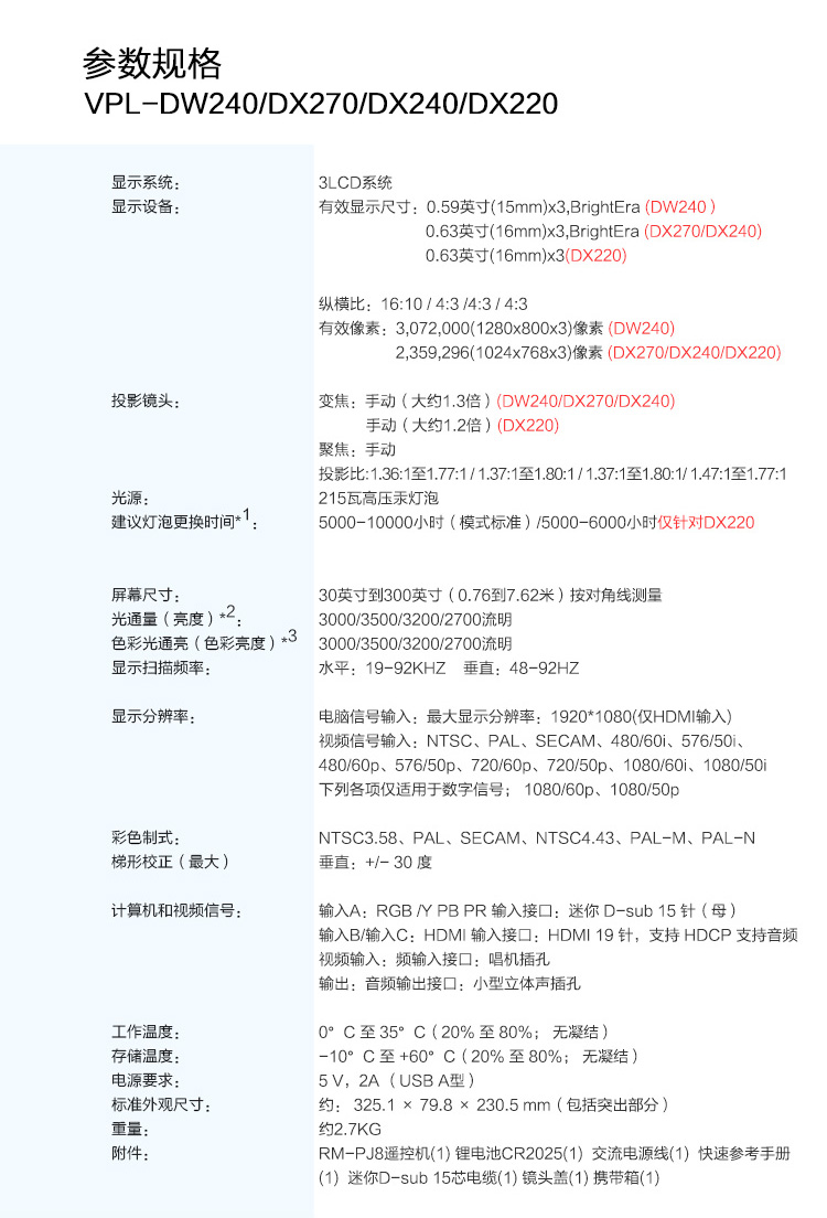 商品名称:索尼(SONY)VPL-DX220投影仪培训教育办公高清家用便携移动投影机