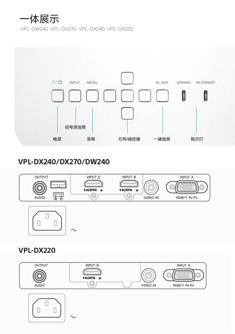索尼(SONY)VPL-DX220投影仪培训教育办公高清家用便携移动投影机