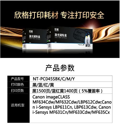 商品名称:欣格 硒鼓 NT-PC045SC 蓝色 适用 Canon i-Sensys MF631Cn/MF633Cdw/MF635Cx