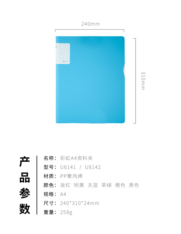 商品名称:树德(Shuter) A4文件夹板 竖款(蓝色)