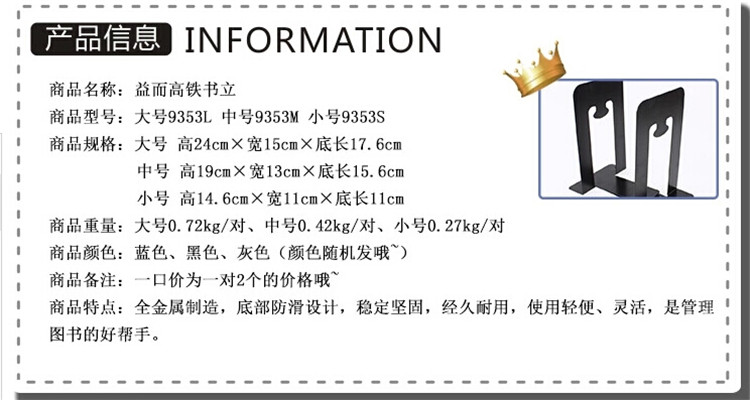 商品名称:益而高(Eagle)9353 书立 中号M 2片/付 黑色