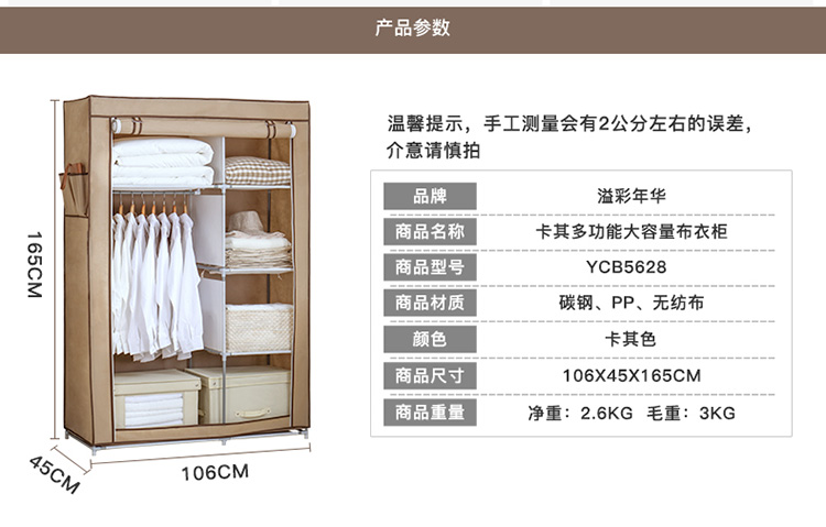 商品名称:溢彩年华 YCB5628 简易衣柜大容量衣柜多功能衣橱布衣柜