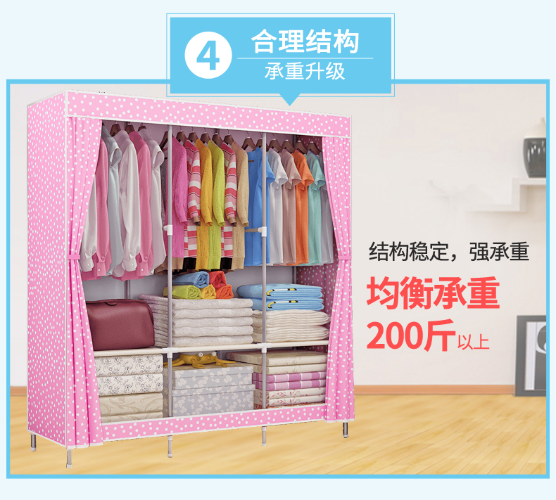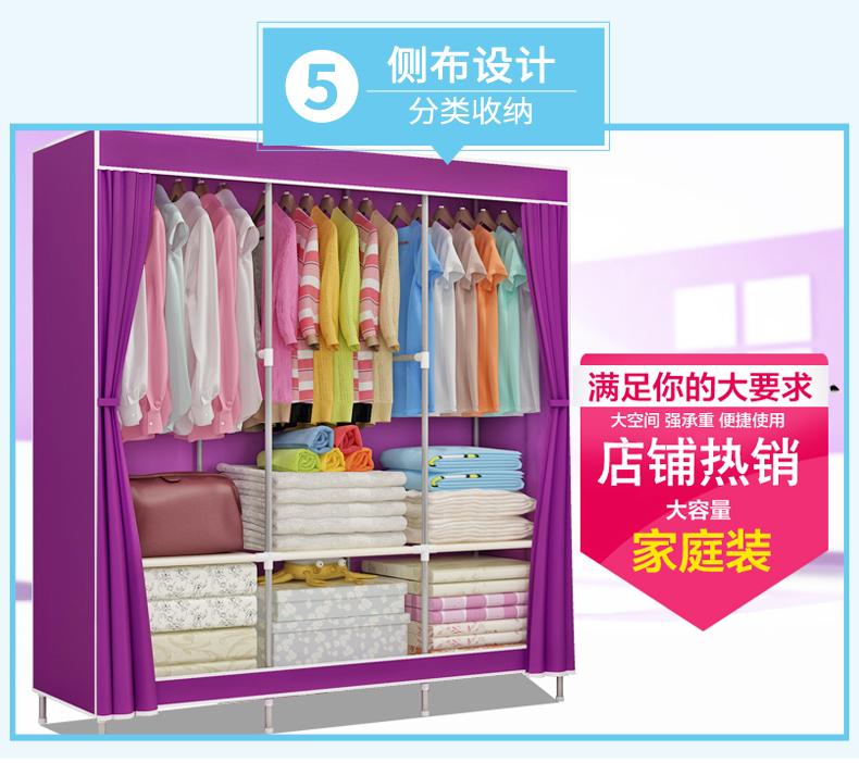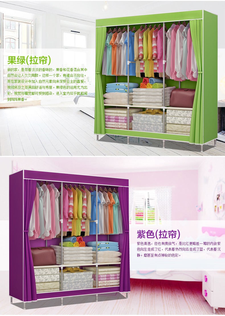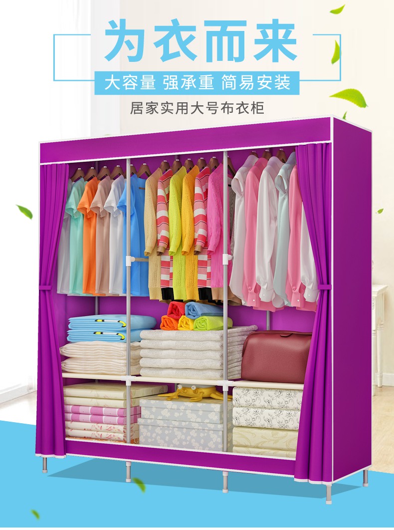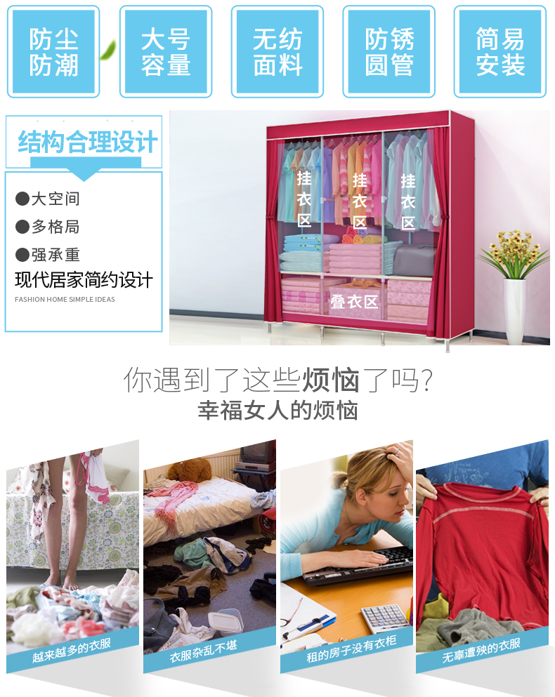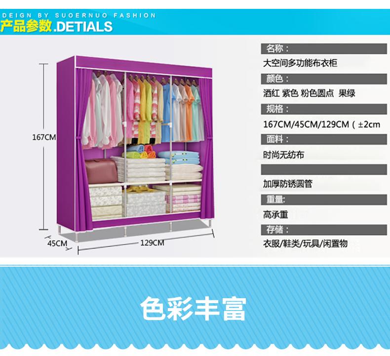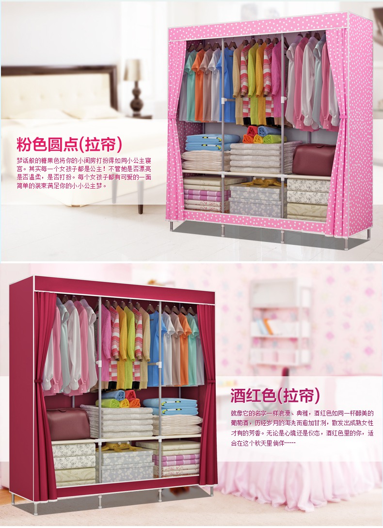 商品名称:索尔诺 1407衣柜 加厚无纺布衣橱 双号收纳柜 酒红色