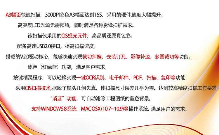 商品名称:紫光(UNIS)M2600U A3大幅画平板扫描仪