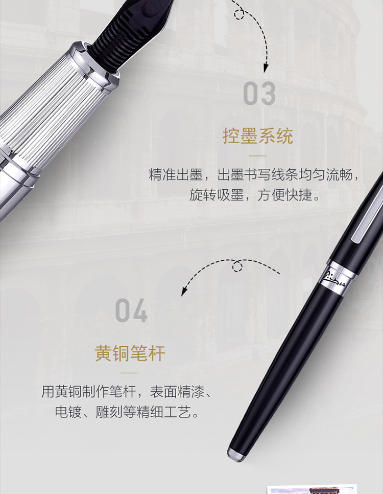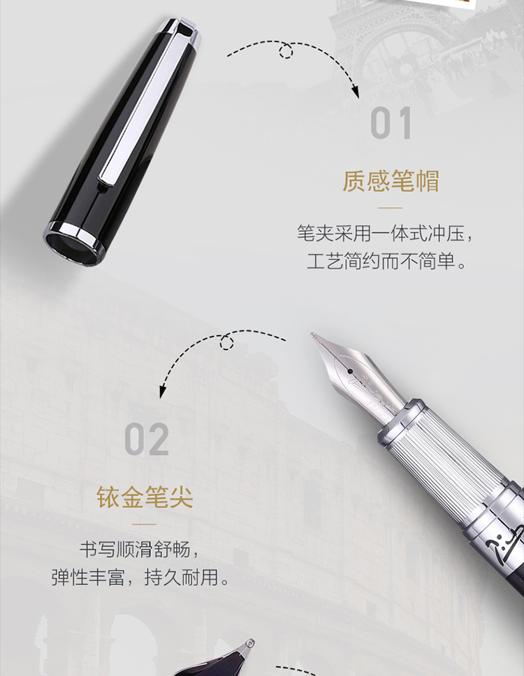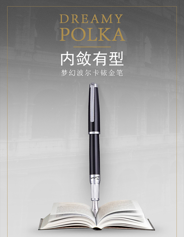 毕加索(pimio) ps-918钢笔 0.5mm墨水笔梦幻波尔卡系列 纯黑银夹