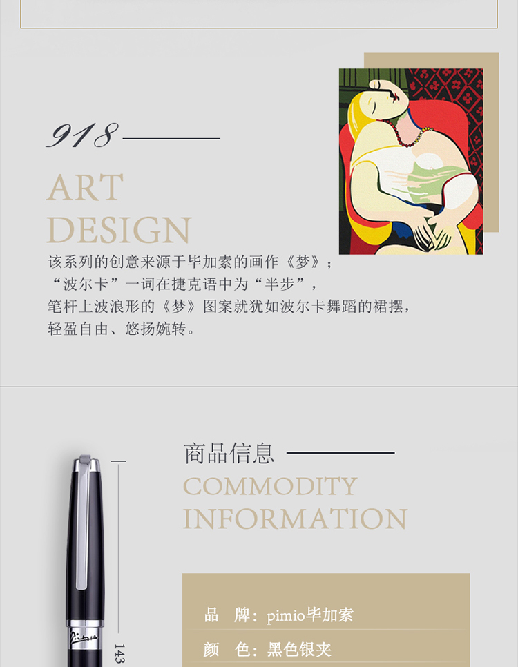 商品名称:毕加索(pimio) ps-918钢笔 0.5mm墨水笔梦幻波尔卡系列 纯黑银夹