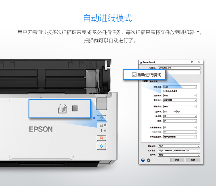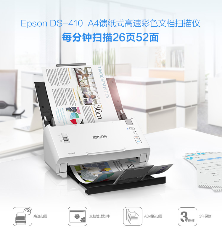 商品名称:爱普生(EPSON) DS-410 A4馈纸式 高速彩色文档扫描仪 自动进纸