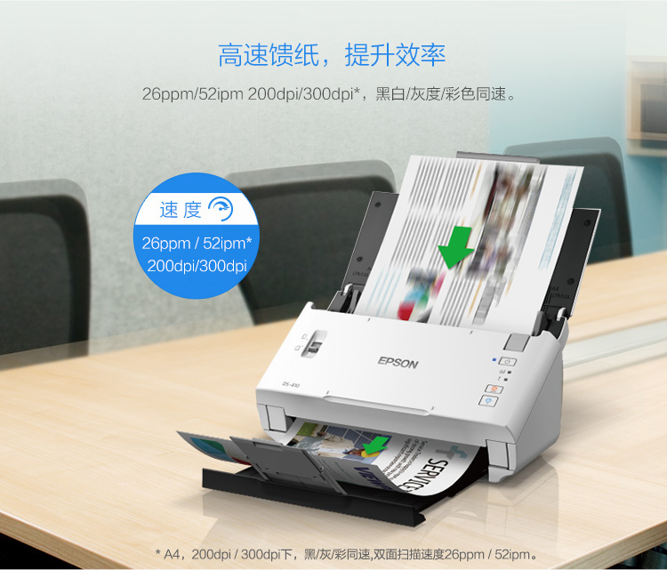 爱普生(EPSON) DS-410 A4馈纸式 高速彩色文档扫描仪 自动进纸