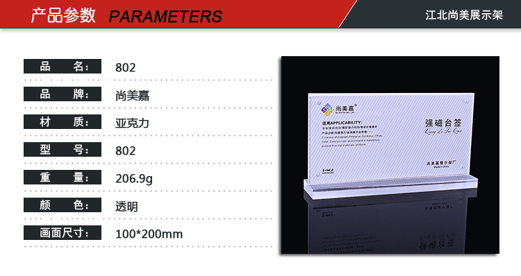 商品名称:尚美嘉 T-802 强磁台签 10*20cm